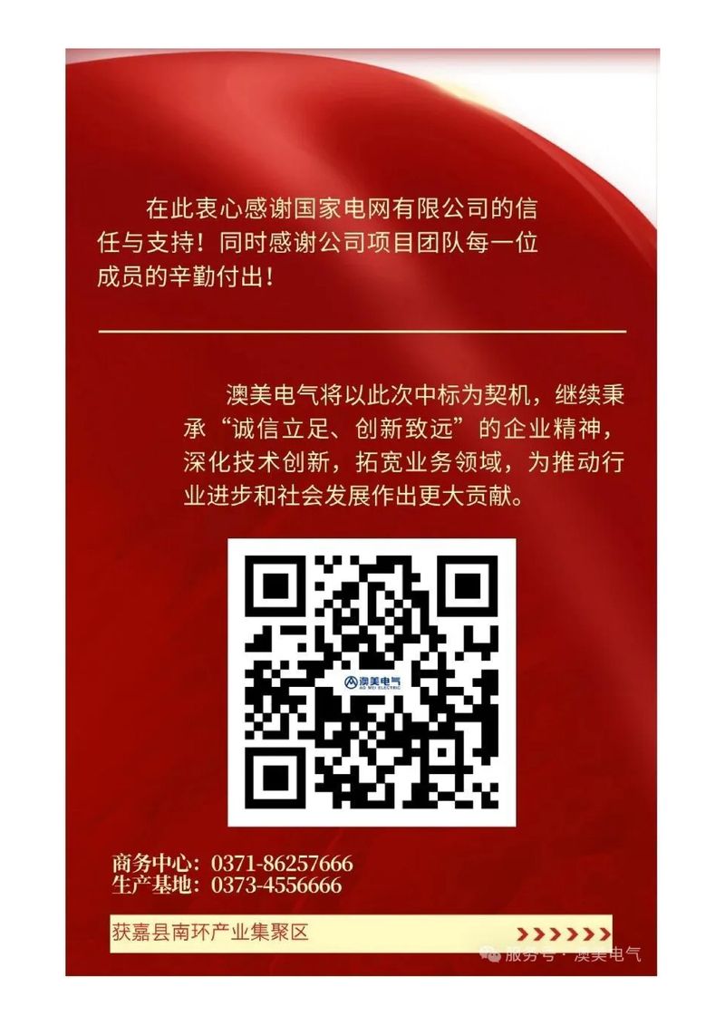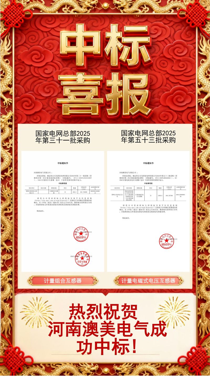 热烈祝贺河南澳美电气有限公司中标国家电网2025年第五十三批次采购计量电磁式电压互感器